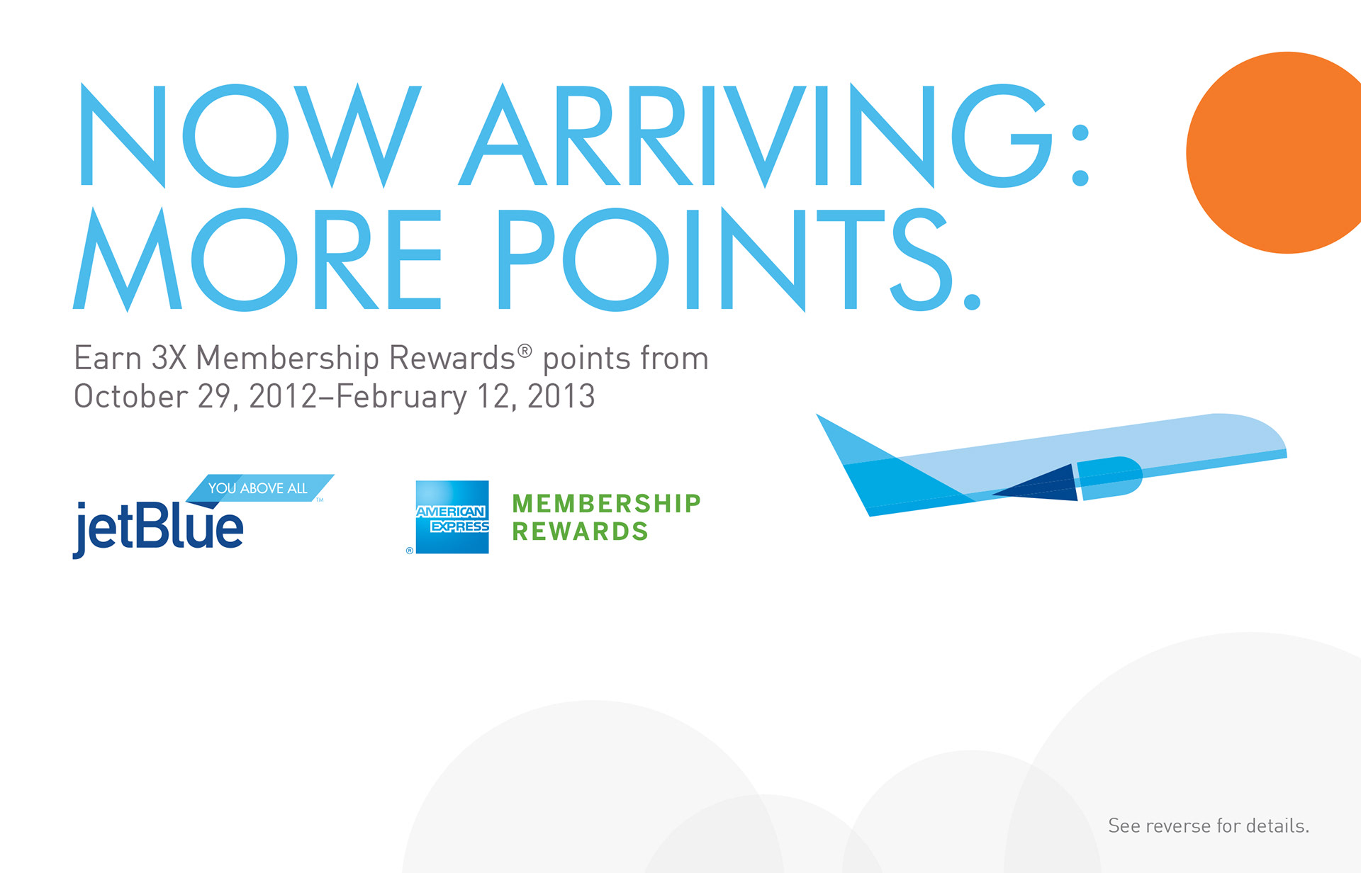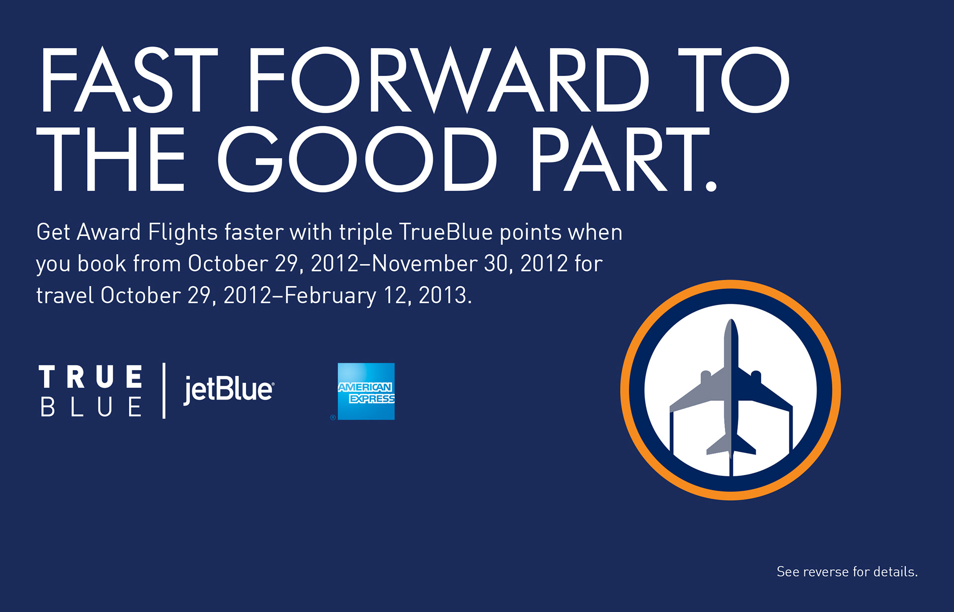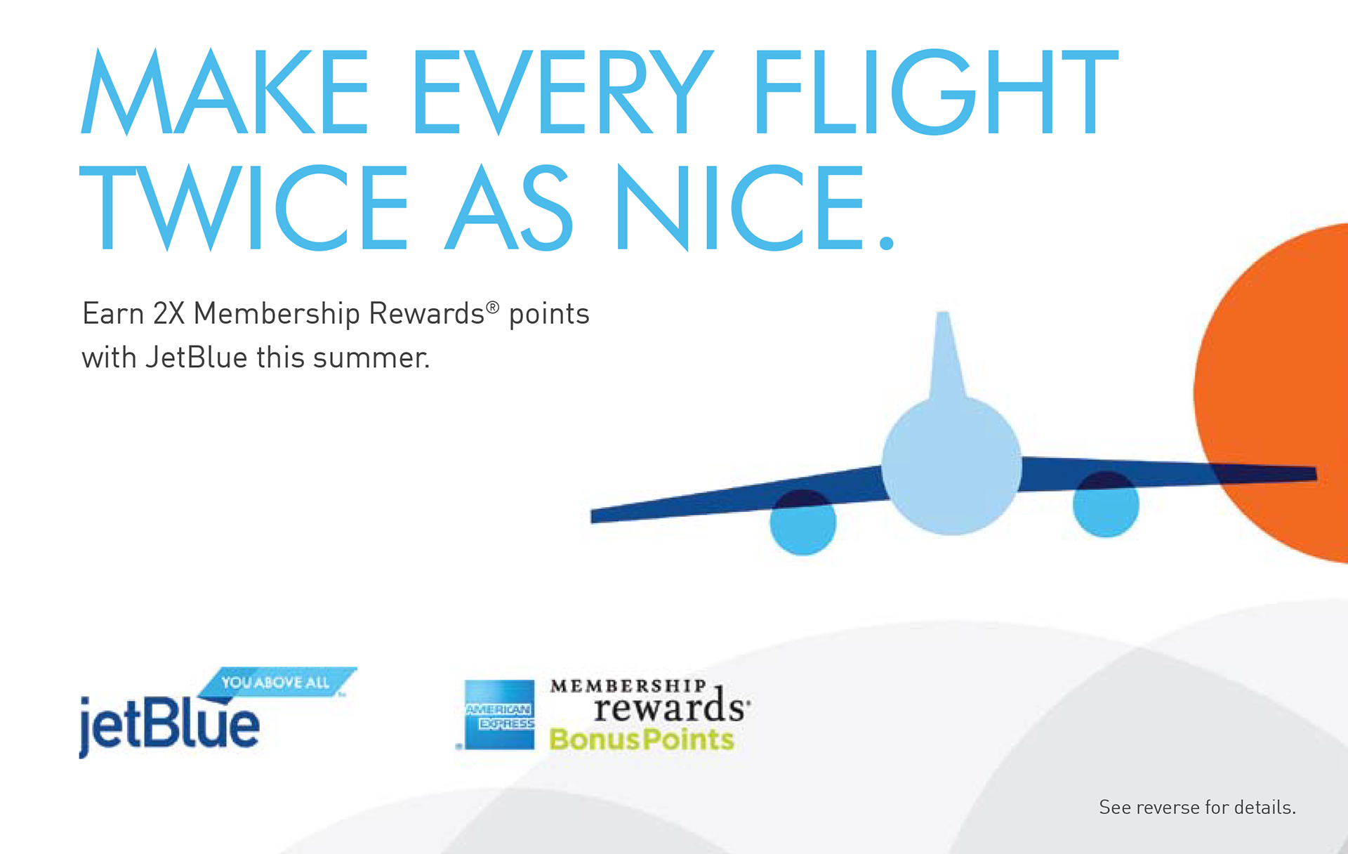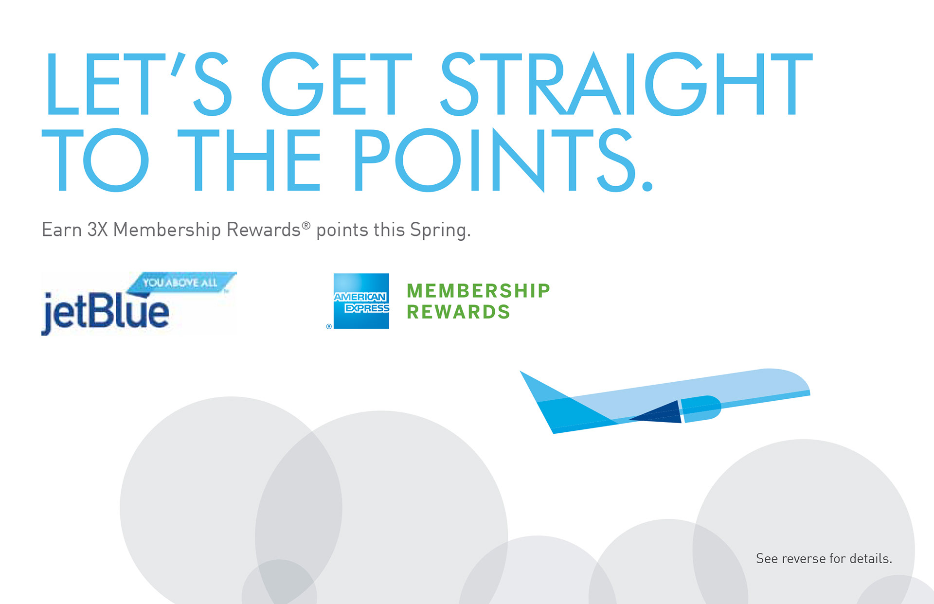 Series of postcards promoting JetBlue discounts and loyalty program bonuses to American Express Card members.